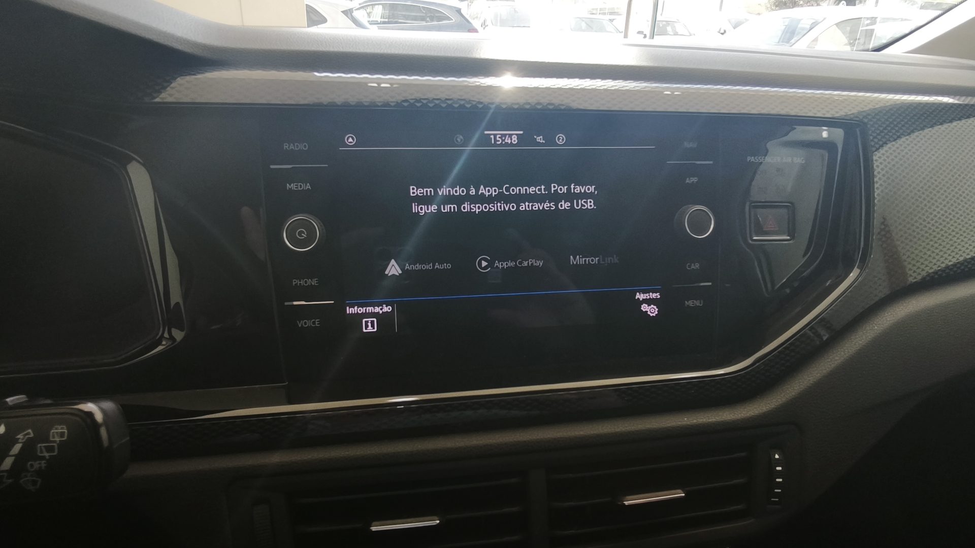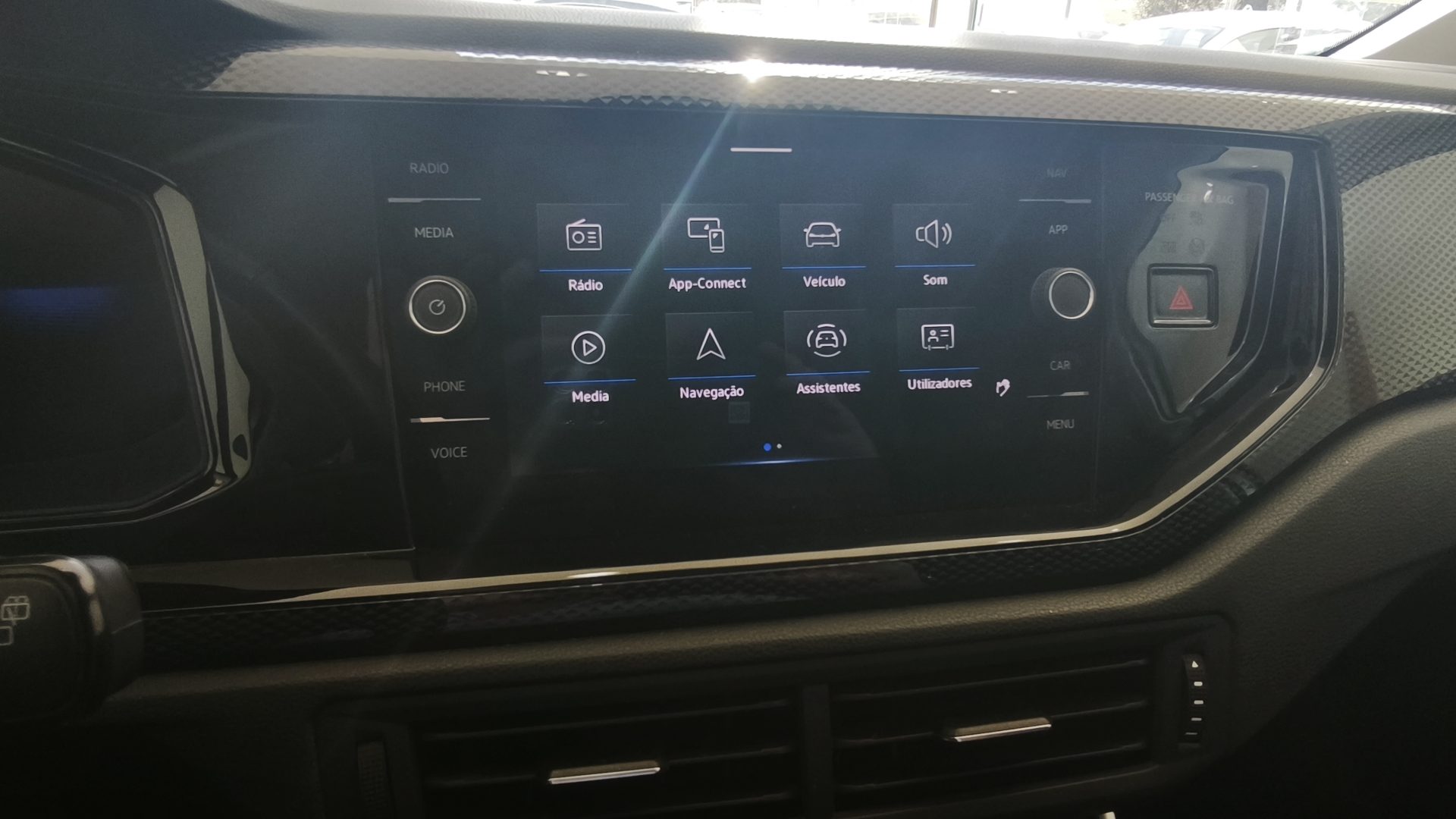 Ecrã tátil 8” com Digital Cockpit e App-Connect (Apple CarPlay / Android Auto), ar condicionado automático “Climatronic”, volante multifunções em pele, cruise control, sensores de estacionamento traseiros, espelhos elétricos e aquecidos, sensores de luz e chuva, jantes de liga leve 15”, computador de bordo, Bluetooth, USB-C e controlo por voz.